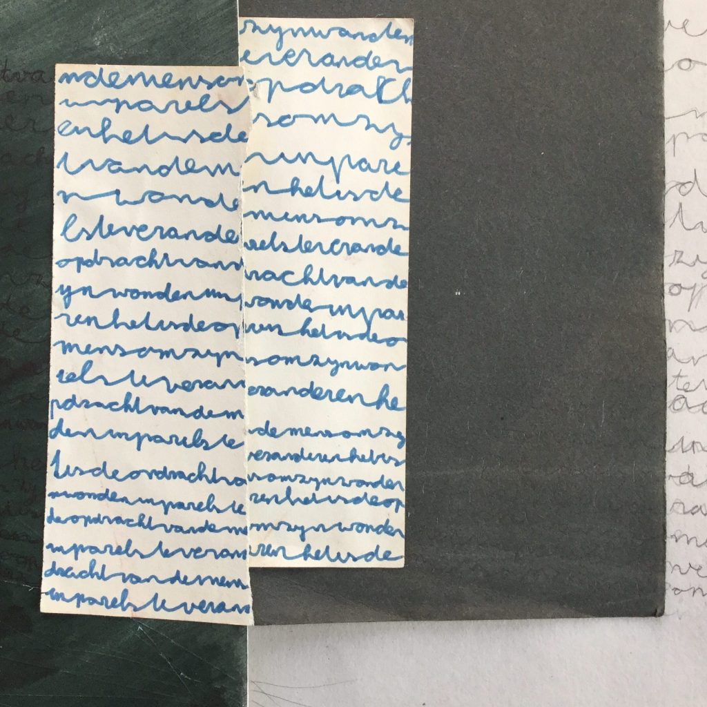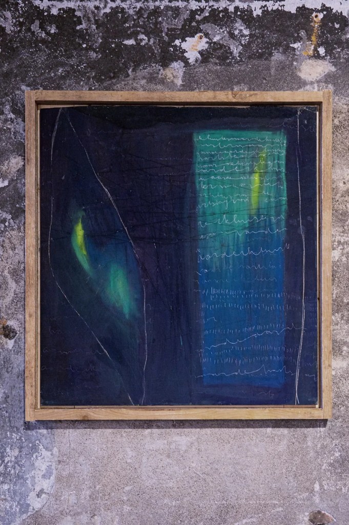 My work moves between collage and painting, where words, pigments, and reclaimed materials weave into layered surfaces. Repetition, ritual, and attentive listening guide the process—lines of text return like prayers, sometimes hidden, sometimes revealed. In recent years I have turned to more silent languages—the subtle voices of materials, spaces, land and rhythms that do not speak in human-words. These pieces explore belonging, thresholds between image and language, and the creation of spaces for the unknown. Each work becomes a kind of home: built from fragments, carrying memory, and open to dialogue with the viewer and the place where it resides.